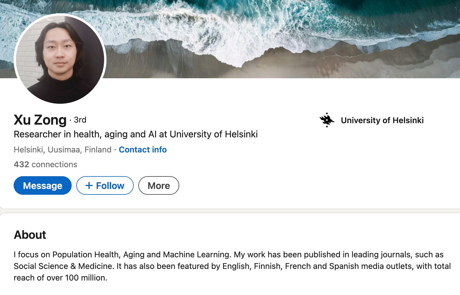 Mr Zong, a doctoral researcher at the University of Helsinki, in Finland, said: